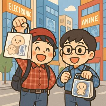 推し活男子ペア聖地巡礼で戦利品ゲット!