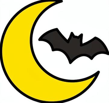 黒のコウモリと月です。
