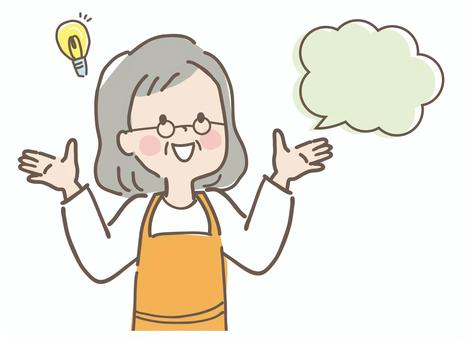 エプロン姿のシニア女性 清潔 吹き出し