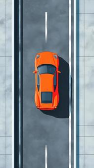上空から見たオレンジスポーツカーと道路