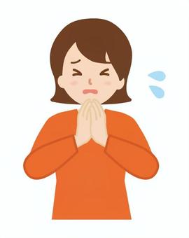 エプロンの女性 呼吸が苦しい 半身