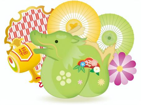 ヘビの干支置物と正月アイテム