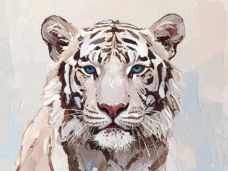 アナログ水彩虎の顔と赤の牡丹の年賀ハガキ