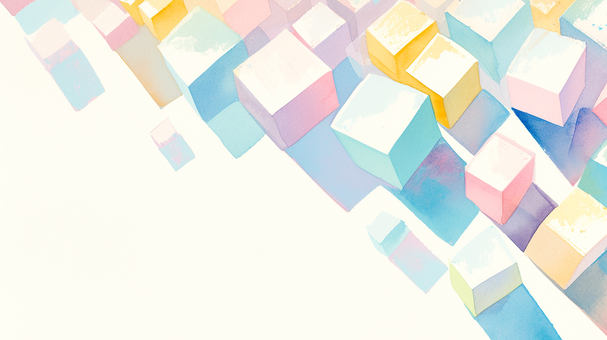 明るいカラーの直方体の水彩イラスト背景