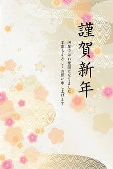 和柄うめの和紙風背景 年賀状素材
