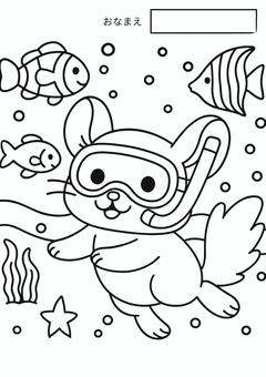 幼児向けチンチラ夏の海でスノーケル塗り絵