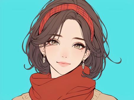 赤いカチューシャの冬女子