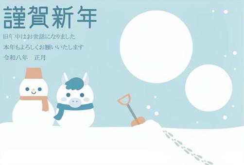 寒中見舞 白熊と雪だるま マフラー 挨拶