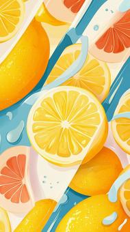 爽やかな柑橘イラストと水滴