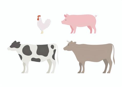 食肉 豚と牛と鶏のイラスト 線あり・なし