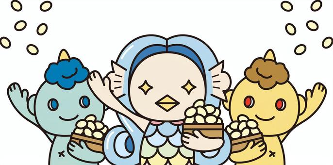 節分のイラスト_アマビエと小鬼