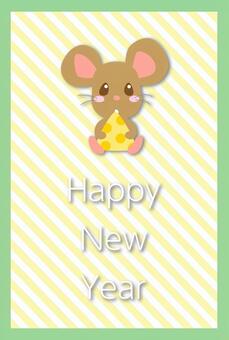 2025年賀状巳年 可愛い鏡餅の白蛇横