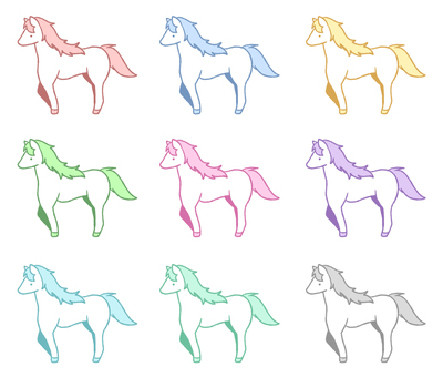シンプルな馬の落書きイラストセット