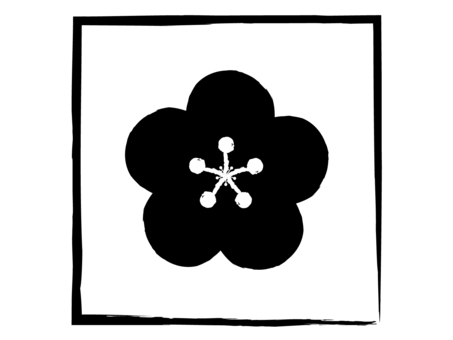 四角い梅の花のスタンプ(黒色)