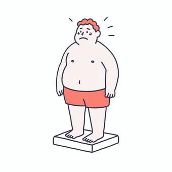 体重計に乗る不安な男性
