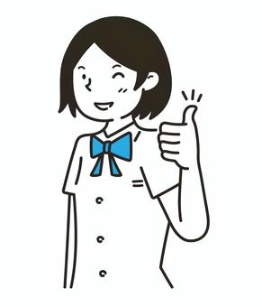 眼鏡の白衣の女性 こちら ゆるいイラスト