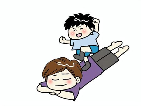 息子に腰を踏んでもらうお父さん