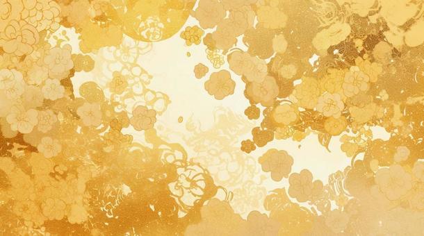 対角配置金桜と矢がすり地の和背景金ヨコ