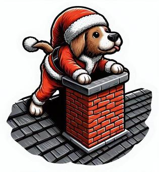 サンタクロースの着ぐるみを着た犬