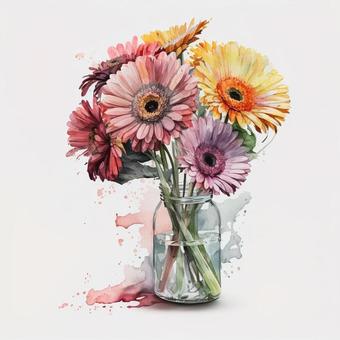 アナログ水彩ガーベラの花4色セット
