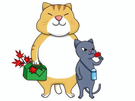紅葉狩りをするネコ