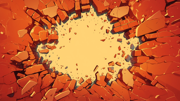 砕け散るレンガの壁の背景イラスト2