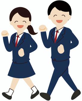 歩く制服を着た男女
