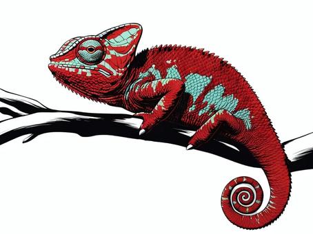 白バックに赤いカメレオン