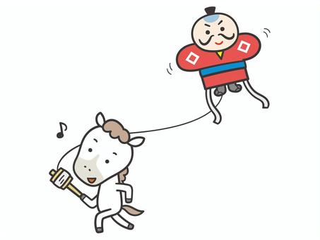 凧揚げするかわいい馬(白馬)