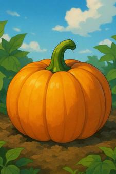 厚塗り水彩風手描きのオレンジ色のカボチャ