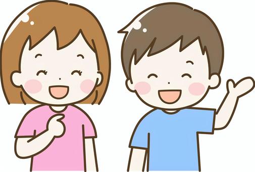 笑顔で手を振るこどもたち 男女