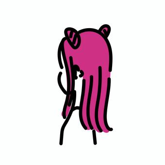 女性の後ろ姿(ねこみみ・ピンク1)