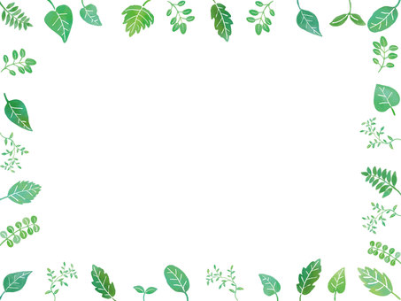 水彩風緑の葉っぱのフレーム背景