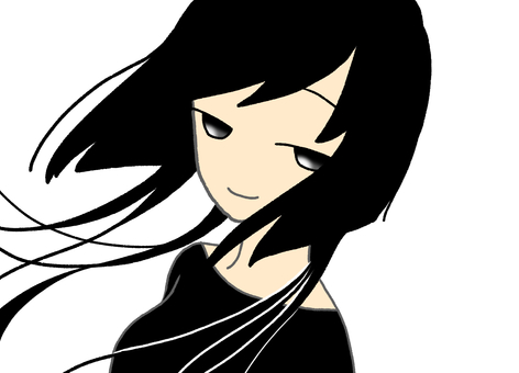 姫カットの黒髪黒ずくめの女の子のイラスト