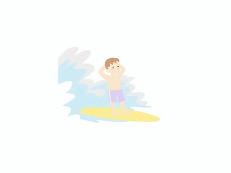 サーフィンをする少年のミニマル