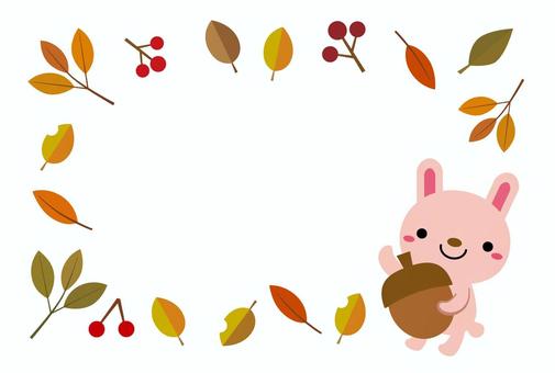 秋の葉っぱと木の実と動物フレーム/うさぎ