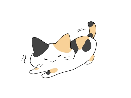 らくがき 伸びをするミケ猫