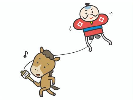 凧揚げをするかわいい馬(茶色馬)