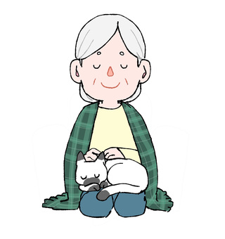 猫と寛ぐおばあさん