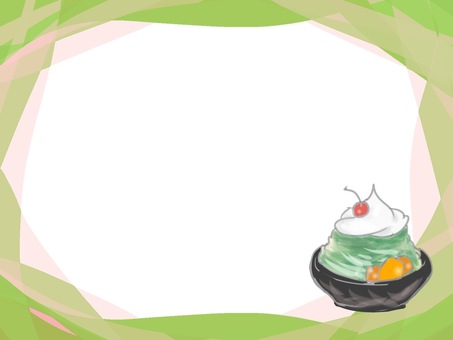 挿絵付き、黄緑の波型フレーム(かき氷)