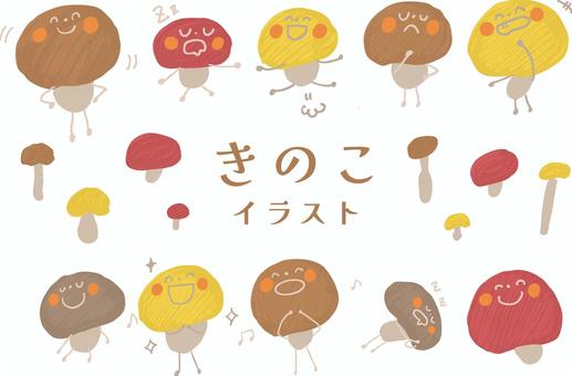 表情付き きのこの手描きイラストセット