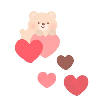 ハートに埋もれるクマ