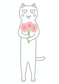 猫に懐かれる棒人間のイラスト(茶トラ)