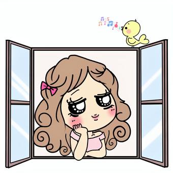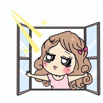 ぶりっ子 窓を開けて日差しを感じる女子