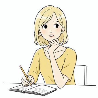 勉強する女子中高生(黄色)