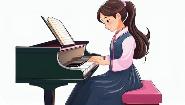 グランドピアノピンクを弾く女の子