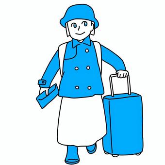 スーツケースを持って旅行へ行く女性