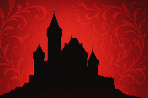 ルビーレッドに浮かぶ古城の壮麗影絵