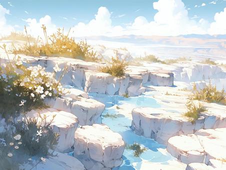凍てつく川の岸辺に咲く春を呼ぶ花々_背景