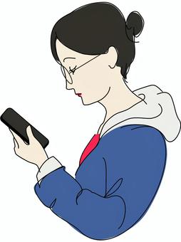 携帯を見る女性